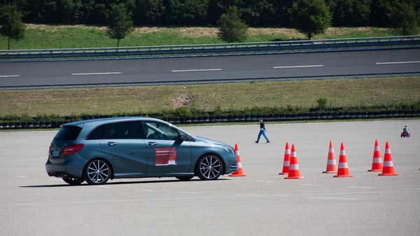 Utána egy szenzorokkal felszerelt Teslával köröztünk egy amorf körpályán, teljesen automatikusan, ahol egy motoros is jelen volt. A motoros közeledtére a jármű reagált, jelzett még azelőtt, hogy mi a tükörben láttuk volna. A két jármű helyzetmeghatározó rendszere kommunikált egymással, és az autó reagált a motoros közeledtére. A további lépés, hogy ezt az interakciót a jármű nem tartja meg magának, hanem felhőben tárolja, az adatbank elérhető a többi közlekedőnek is. Így a következő résztvevő más nem csak a szenzoraival érzékeli a motoros közeledtét, hanem az adatbankból tudja a várható érkezésének irányát és sebességét.