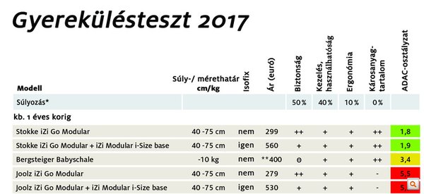 A teszteredményeket böngészve először az tűnik fel, hogy összesen négy gyerekülés kapott elégtelen osztályzatot, vagyis bukott meg a teszten. Az okok különbözőek, érdemes tehát egy kicsit a számok mögé nézni. Az egyéves kor alatti gyerekeknek szánt termékek közül a Joolz két ülése vérzett el. Az iZi Go Modular és annak i-Size változata egyaránt azért nem felelt meg, mert egészségkárosító anyagokat találtak bennük. A TCPP nevű égésgátlóról van szó, amely rákkeltő hatású lehet. Mondhatjuk, hogy kár érte, mert minden más értékelésben jó (sőt, az egyik változat a biztonság tekintetében kiváló) osztályzatot kapott.