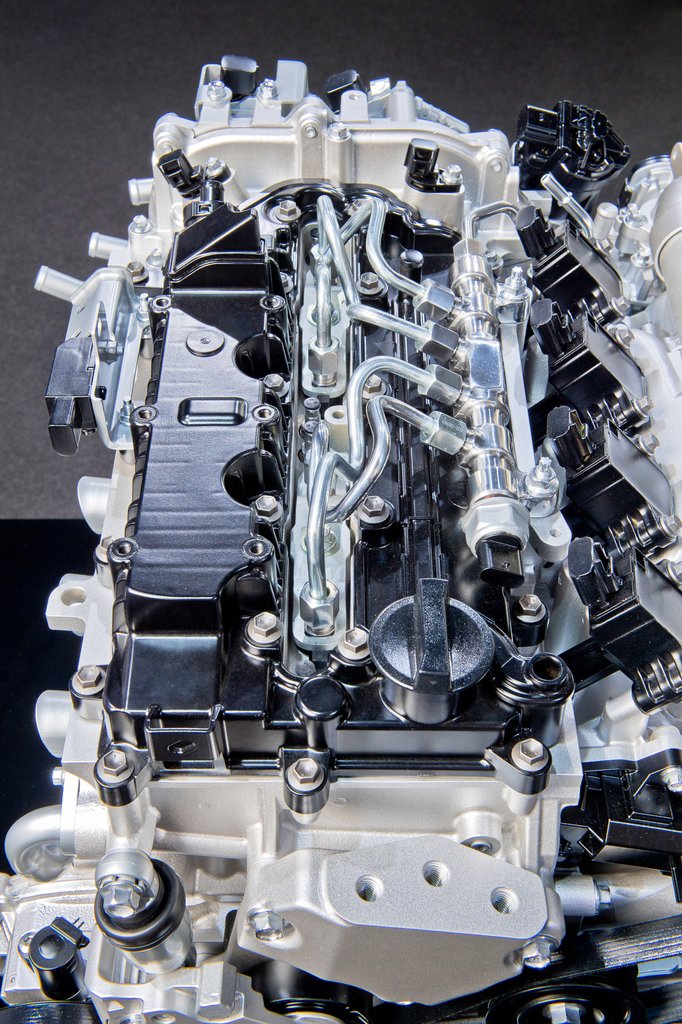 A motor mechanikai kialakításáról csak annyit tudhattunk meg, hogy egy kiegészítő dugattyú - amely a négy szelep között van felülről - módosítja az égéstér térfogatát, a gyújtógyertya pedig oldalról, az égéstér szélén van. A benzinbefecskendezés pedig közvetlenül az égéstérbe történik, benzinmotorhoz képest szokatlanul nagy nyomással.