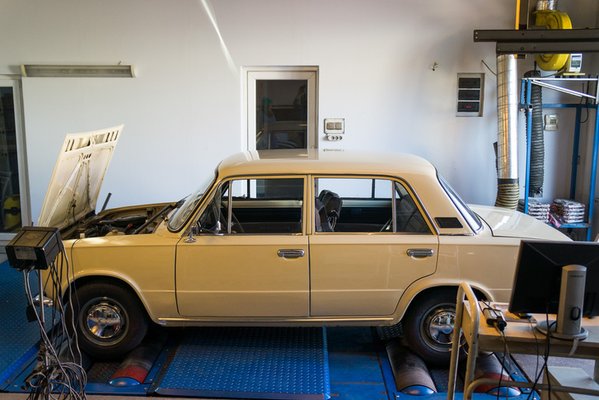 A motornak szép hangja van, körülbelül 4000-nél a karburátor kettes torka erősen kezd szólni, nagy a szívászaj, de a motor bátran forog bele a 6000-be...és aztán eléri a 7000-es fordulatot. A rövid löketű motor valóban nagyon forgós, de nem számítottunk ilyen fordulatszám-orgiára. Ráadásul meg kell ismételni a mérést, mert a pad kezelője túl kis terhelést állított be, így a motor gyorsan leforgott. A második mérésnél már lassabban forog bele a 6000-be, de szépen lezajlik a mérés. Után kicsit tovább pihentettük alapjáraton ketyegtetve az öreg Ladát.
