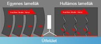 Ezenkívül a hideg évszakra szánt gumik kialakítása, jégen és hóban való kapaszkodásának megoldása is sokkal komplexebb feladat lett. Míg korábban a bütyök akadt a jégbe, kiemelkedő rögbe, addig a mai gumiknál sok száz kis lamella nyílik ki, élükkel kapaszkodva és nyílt árkukba befogadva egy kevés havat, amely aztán az úton lévő hóhoz tapadva további kapaszkodást fejt ki. Általánosságban azt szokták mondani, a jó hógumi sok havat tud felvenni, így hó a hóval összetapadva fejti ki jótékony hatását. A jeges, fagyott úton már más a helyzet, ott a deformálódó lamellák apró élei folytatnak elkeseredett küzdelmet a kevés tapadásért...