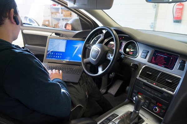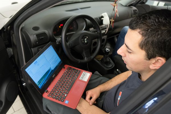 Ha kész a munka, ismét a laptopé a főszerep, ugyanis a rendszert egy algoritmus teszteli, így meg lehet spórolni a tesztkört is. Itt mindent rendben találtak, alig több mint fél óra után a tulajdonos már hajt is el az autójával.