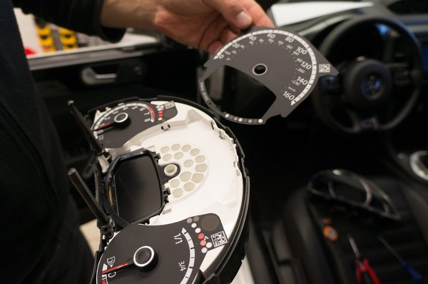 Marci közben egy félig szétkapott Beetle Cabrióhoz vezet. Az autót Amerikából hozták be, így néhány dolgot át kell rajta alakítani. Ilyen például műszerfali óracsoport, ahol a mérföldes számlapot érdemes lecserélni kilométeresre. Marci rögtön neki is áll, pillanatok alatt kikerül a mérföldes számlap – elég sok apró kis pöcök tud eltörni, biztos nem mernék nekiállni. „Az ember egy idő után ráérez. Felismer egy logikát, amely szerint a gyári mérnökök dolgoztak. Például az óracsoportnál a mutatót kicsit el kell fordítani, miközben lehúzzuk a tengelyéről. Ez sok más dologgal is így van” – mondja Marci. Aha, mi sem egyszerűbb.