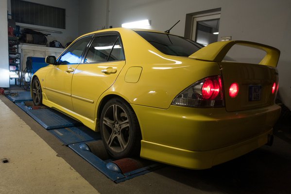 Ez a citromsárga Toyota Altezza szerepelt már újságunkban, tudtuk is hogy jó, most azonban szinte véletlenül került be a mérésre. Eredetileg az AMTS-re gyűjtöttük a tuningolt autókat, de bizonytalan volt a részvétel, egyik nem mert eljönni, a másik szétesett előző nap, úgyhogy az Altezzát amolyan biztonsági tartaléknak választottuk. Azért sem igazán illett a képbe és a múló hónapra kitalált koncepcióba, mert ez az autó teljesen széria állapotú, kivéve a TRD (Toyota Racing Development) optikai elemeket a karosszérián. Egyébként annyira gyári, hogy a japán belpiacos 180 km/órás sebességkorlát is benne van és aktív.