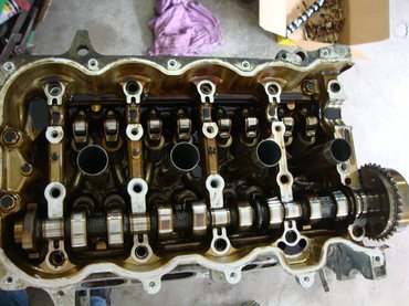 A szelepfedél leemelése után jött (számomra, aki nem vagyok a típus ismerője) az első meglepetés. Bár az olaj aranysárgára festette az alkatrészeket, számottevő olajiszap sehol nem volt. Az olajteknőben sem, de a forgattyúsház is teljesen tiszta, noha az olajnak égett szaga volt. A hengerfej égéstereiben durva lerakódásokat találtunk, a kipufogócsatornák szintén nagyon kormosak voltak. A magas olajfogyasztás egyértelmű jelei.