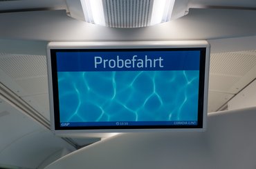 Mikor megemlítették, hogy a prezentációk után a gyár tesztpályáján utazhatunk is a prototípussal, azt gondoltam, valami poroszkálás lesz egy félkész járművel, de elég nagyot tévedtem. A Coradia iLint simán ment hatvannal, a gyári végsebesség 140 km/h, és egyébként utasként a hidrogénhajtást demózó dizájnon kívül semmi különlegességet nem lehetett tapasztalni rajta.
