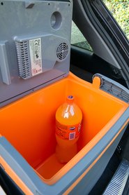 Az eredmény magáért beszélt: a kombi csomagtartójában volt a két doboz, 25-30 perces út végén a dobozokban egyformán 8 fok volt, míg a csomagtartóban 27. Itt még tartották magukat, de megálltam a napon (a hűtés tovább működött), a rolót nem húztam be, nem is szabad, mert elzárná a levegőrostélyokat. A bő egy órányi parkolás végére az Auchan-ládában 13, a Lidlében 10 fok volt. A csomagtartóban meg 39-40. Ezután jött egy hosszabb városi út, melynek a végére, hiába klímáztam, a csomagtérben ugyanilyen meleg maradt. A Lidl-féle doboz azonban tartotta a 10 fokot, míg az Auchanéban tovább melegedett a levegő, így alakult ki a végső 5-6 fok különbség. A benne tárolt italok is melegebbek voltak, mint a Crivitben, méghozzá úgy, hogy – merthogy neki ilyene is van – a hőfokszabályzó a legalacsonyabb állásban volt. A Crivit hálózati hűtési funkciója egyébként teljesen életképes, ilyenkor nagyobb a teljesítménye is pár wattal. Ezt csak egy liternyi, meleg kólával teszteltem, de két óra alatt megvolt neki a környezeti hőmérséklethez képest ígért mínusz húsz fok.