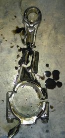 A csapágyból apró darabok válnak ki, amelyek vastagsága meghaladja a csapágy körülbelül 2-3 század milliméteres illesztési hézagát, a csap és a csapágyfém közé beékelődnek, a nagy felületi nyomás hatására a kenőréteg megszűnik, és lokális összehegedések keletkeznek. Amikor ez az összehegedés annyira megfogja a hajtórudat, hogy a tovább forduló főtengely nem tud forogni, akkor a forgásirány-oldali hajtórúd csapágycsavar elszakad, a hajtórúd ott megáll, a következő fordulatnál a főtengely hajtókarja rácsap és elszakítja, hiszen a dugattyú nem tud lejjebb jönni.