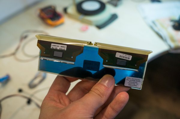 "Körülbelül fél perc alatt, emberi kéz érintése nélkül építettek össze egy kijelzőt a hozzá való panellel. Ehhez speciális, epoxigyanta-alapú, Z irányú vezető ragasztót használtak. A gyantába apró, porszerű fémrészecskéket szórtak, 180 fokra hevítették, majd az LCD érintkező sávjával és a panellel összenyomva létrejött az elektromos kötés.