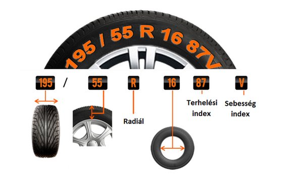 Gumiméretből rengeteg létezik, és ha valaki nincs képben, könnyen elveszhet a számok között. Hogyaszongya száznyolcvanöt per ötvenöt, meg valami R, és még több szám. Mit is jelentenek ezek? A ma már szinte kizárólagosan elterjedt radiál abroncsok méreteit jellemzően a 195/55 R16 formátumban adják meg. A gumin ennél valamivel több adat szerepel, mondjuk így: 195/55 R16 87 V. Most nézzük sorban, mit olvashatunk ki ezekből: