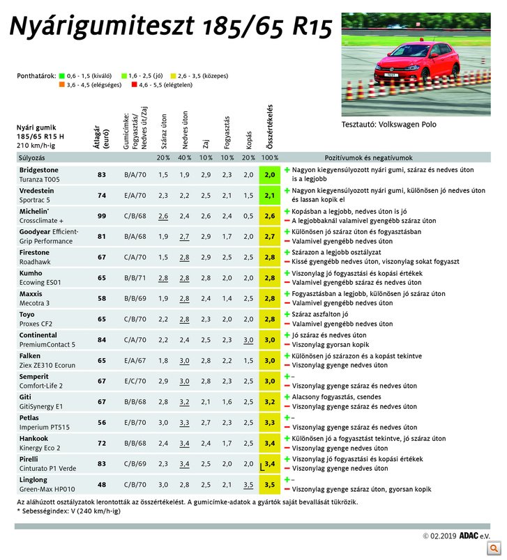 A német autóklub gumitesztjei jó kapaszkodót adnak azoknak, akik gumivásárlást előtt állnak. Ahogy láthatjuk, nem mindig a drágább a jobb, de nem szabad ezeket a ranglistákat sem szentírásként kezelni. Érdemes mindenkinek átgondolni, mit vár el egy abroncstól, és olyat választani, amely abban teljesít kiemelkedően. Az ADAC-nál ugyanis nem az egy-egy szempontból kiváló gumi a tesztgyőztes, a németeknél mindennél fontosabb a kiegyensúlyozottság.