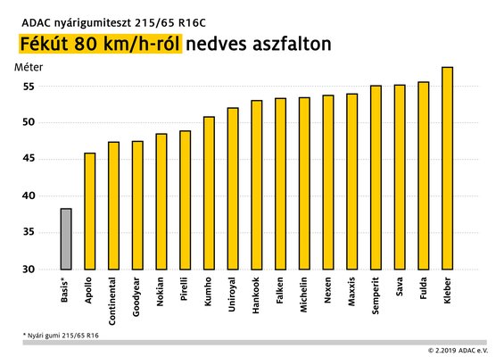 Száraz aszfalton a legjobb némi meglepetésre az Apollo Altrust lett – a Vredesteinhez tartozó márkának Magyarországon, Gyöngyös mellett is van gyára. Kicsivel mögötte a Maxxis Vansmart MCV3+-t találjuk. A legrosszabbul a Kléber Transpro teljesített, de nem sokkal volt jobb neve ellenére a Continental VanContact 200 sem.