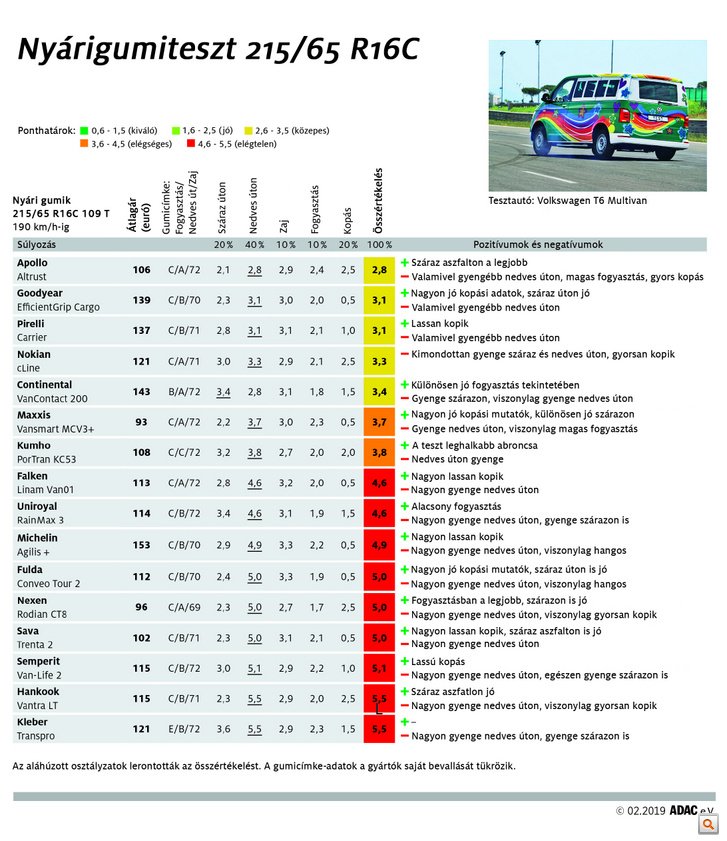Az igazi tavasz még csak mutogatja magát, a fagy vissza-visszavág, mégis elkészült az ADAC menetrend szerinti nyárigumitesztje. Ezúttal a kis- és kompaktautók jellemző méretén kívül egy szokatlan kategóriát, a kisbuszok és furgonok gyakori abroncsait is kipróbálták. Az eredmény: hidegzuhany.