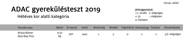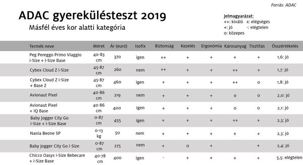 Idén összesen harmincegy különböző terméket választottak ki a tesztre. Ennél nyilván sokkal többfélét lehet kapni, és persze a magyar meg a német piac között sem százszázalékos az átfedés. Ennek ellenére a kipróbált gyerekülések jelentős része elérhető itthon is, ezért releváns nekünk is az ADAC által készített anyag. A tesztgyőztesek mindegyike kapható Magyarországon valamilyen kivitelben, míg más esetekben van hazai forgalmazó, de az adott modell már kifutott idehaza.