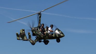 Amikor a kamerával a kezemben beültettek a hátsó sorba, kicsit megilletődtem. Szinte még egy biciklin is jobban körbe vagy védve, annyira szabadon ül az ember. Az előttünk lévő műszerfalat leszámítva körpanorámás az ülés, sehol egy zavaró tényező, lényegében kilóg a lábunk a semmibe. Felzúg a Rotax, és a karbon lapátok szép lassan kitolnak a felszállópályára. Aztán váratlan lódulással nekiindul az alig 280 kilós gép, felpörögnek a rotorok és egyszer csak elemelkedik a gép, pedig még alig haladunk.