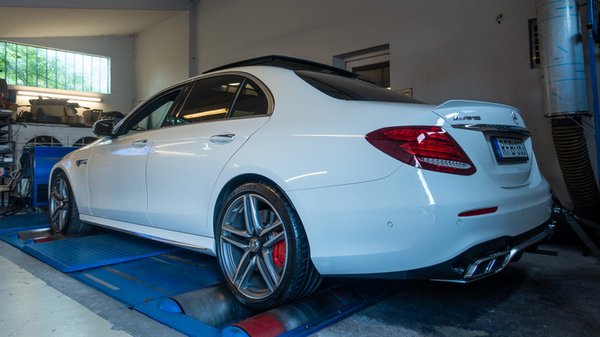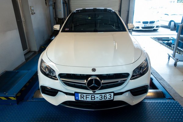 Az autó hajtáslánca is különleges, mert a 4Matic+ elektronikusan vezérelt összkerékhajtás különböző üzemmódokra képes, a hajtást az első és hátsó kerekek között többféleképpen is meg tudja osztani a rendszer. A mérésnél például tisztán hátsókerekesként mértük az E63S-t és előtte természetesen teljesítménymérő módba kapcsoltuk az agyát.