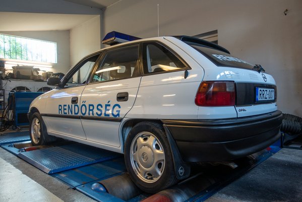 A mérésre érkezett Astra a Belügyminisztérium rendőrségi tenderére készített szentgotthárdi autó, amely járőrkocsiként született. Matricázása is pontos, tulajdonosának pedig megvan minden dokumentációja az autóhoz, sőt, még a korabeli Sorozat forgalomba helyezési engedélye is, amit annak idejében típusbizonyítványnak hívtak. Ebben a Közlekedési Főfelügyelet által kiadott anyagban a módosítások pontosan részletezve fel vannak sorolva, a precizitás megdöbbentő. Az erről szóló műsorrészt ajánljuk minden alanyi autótuner figyelmébe, hogy lássa, még egy rendőrautót sem lehet úgy átalakítani, hogy arról nem készül részletes dokumentáció.