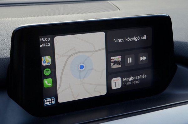 Ez a folyamatot is ügyesebben oldották meg a frissítésben. Mostantól csak megjelenik a sarokban egy kis ikon, hogy éppen aktív a hangvezérlés, ahelyett, hogy kitakarná az egész képernyőt. Persze Sirit magyarul nem utasíthatjuk. Az Apple szoftvere már arra is készen áll, hogy azokkal az autókkal is megbirkózzon, amelyeknek utasterében több digitális kijelző is található, tehát elvileg lehetséges lesz, hogy a kormány mögött lássuk a térképet, és a fő képernyőn a zenéinket, de ezt még egyetlen autógyár sem támogatja.