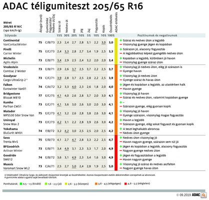 Ahogy a kisebb méretnél, úgy itt is a kiegyensúlyozottság a döntő. Ebben pedig a Continental VanContactWinter volt verhetetlen, igaz, a viszonylag gyors kopása miatt ez is csak közepest kapott. Néhány tizeddel lemaradt a Pirelli Carrier Winter, a dobogó harmadik foka pedig a Michelin Agilis Alpiné. A többiek átcsúsztak egy elégségessel, négy gyártónak azonban bukta jutott. A Sava, a Goodride és a Maxxis főleg havon, míg a BF Goodrich nedves úton vérzett el.