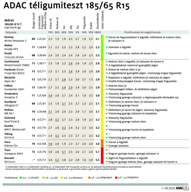 Nyilván sokak választását az ár határolja be, de olcsóbb gumik közt is lehetnek jók, ez évről évre látszik az ADAC tesztjéből. Idén a Kléber az egyik példa, amely darabonként egy ötezressel olcsóbb a nagynevű Continentalnál, a 185-ös méretben mégis elverte azt.