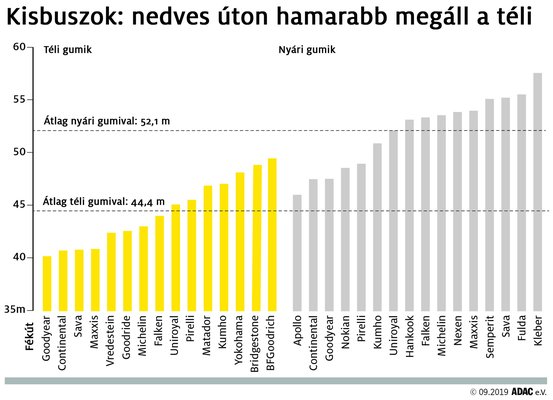 A mezőny harmadát rövid fékút, egész jó kanyarstabilitás jellemezte, azonban az aquaplaning-teszt már sokaknak okozott kellemetlen pillanatokat. Jól csak a Continental vizsgázott, de néhányan azért kiérdemeltek egy közepest.