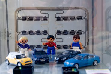 A tesztelés fontosságát nem lehet eléggé hangsúlyozni, Zoli például beindított nekünk egy Opel Astra dízelmotort az asztalon, csak éppen motor nélkül. A vezérlőn ott volt az adagoló, amint jelet kapott, elkezdett azon a jellegzetes hangon ketyegni, amit a dízelek mellett állva hallunk, csak ezt épp betekerték pár zokniba, meg bezárták egy műanyagdobozba, mert baromi hangos. Van a műhelyben Mazdához tartozó Bose prémium hifi is. Ez nemcsak matricájában Bose, az erősítő hűtőbordáin ott a mart felirat, jelenleg éppen ezt is tesztelik, erről hallgat zenét a mérnökcsapat az egyik laborban. A szomszéd labor az operátoroké, ebben forrasztópákával, többnyire mikroszkóp alatt történik a tényleges javítás.