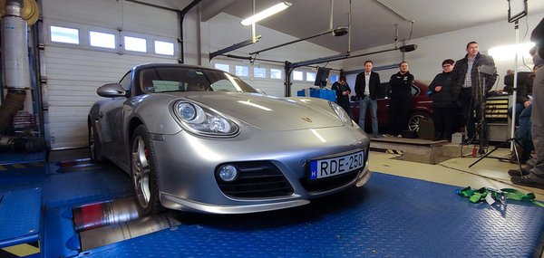 El kell hinnünk az állítást, azt azonban nem tudjuk, hogy mit tud a gyárilag 320 lóerős motor 250 ezer sportos kilométer után a mérőpadon. Ez egy szívómotor, egészen szép literteljesítménnyel, ám a hozzá hasonló konstrukciók jellemzően nem produkálják a gyári értékeket. A legutóbbi, nagyjából kortárs 911-es Porsche csúnyán alulteljesített az Erőmérőben, ennek tudatában nagyon vártuk a mostanit.
