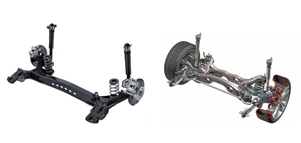 1) Igazi független elmozdulást enged a hátsó kerekeknek úgy, hogy azok közel a teljes gumifelületükkel az úton tudnak maradni – hiszen a különálló keresztstabilizátorral finomabban lehet hangolni a két kerék összekapcsolását, mint a csatolt lengőkaros rendszer hídmerevségével.