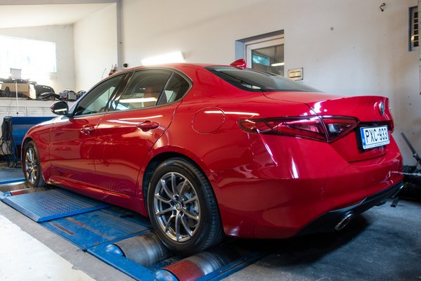Minden tesztben kiemelték, hogy a Giulia alapkivitele is nagyon jó, kiegyensúlyozott és megfelelő dinamikával viszi a sportos hátsókerekest. A motor hagyományos elvekre épül, két vezérműtengely, 16 szelep, változó szelepvezérlés, turbófeltöltő, töltőlevegő-hűtő.