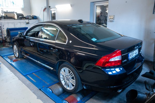 A mérésre érkezett Volvo S80 2007-ben készült, amikor a modellsorozat csúcsát egy szívó V8-as motorral szerelt változat jelentette. A különleges, keresztben elhelyezett 4,4 literes blokkot a Volvo a Yamaha segítségével fejlesztette ki. A Volvo által megadott specifikációk alapján a Yamaha egy létező, palettáján már szereplő nyolchengeres konstrukciót tekintett alapnak és azt dolgozta át alaposan.