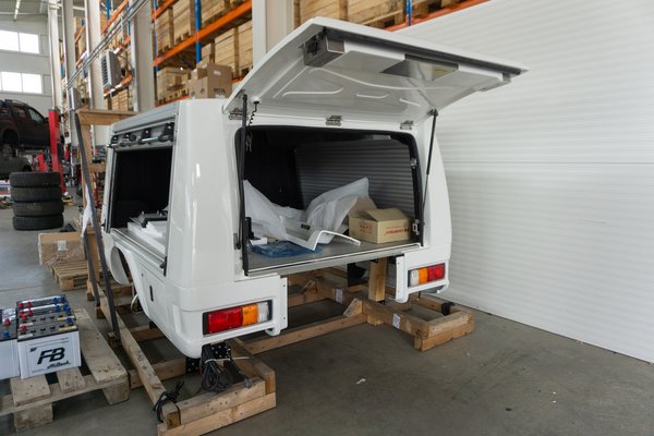 Mivel a Mussón a platót is a központi zár zárja, adja magát, hogy a doboz is így záródjon. Emiatt a szerelés se “csak” annyiból állt, hogy feldobják a bódét, rácsavarozzák, esetleg bekötik a pótféklámpát. Meglepően sok aprólékos munkafázisból áll egy ilyen felszerelés, ha jól akarják csinálni.