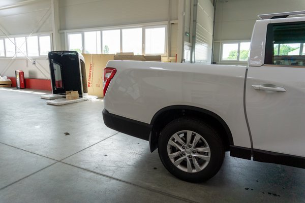 A Musso nem annyira elterjedt itthon, de szerencsére akadt rávaló doboz. Igaz, ehhez egészen a Mátészalkán lévő Maxlinerig kellett menni, ők többek között a Ssangyongot is forgalmazó Wallis Automtive Europe hivatalos felépítményező cége. Árulnak szinte mindent, ami pickuphoz kell, platófedéltől csörlőkön keresztül az emelőszettig, és ezek mind legálisan, papírozva kerülnek az autóba. A cégről sokat elmond, hogy bár szinte semmihez nincs közel, bőven akadnak az ország túlfeléről is visszatérő vásárlók. És nem reklamációs céllal.