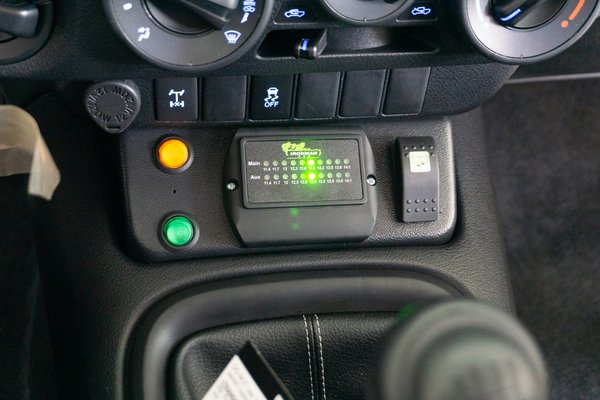 Az extra akku egy töltésvezérlőt is kap, amit a fülképből is tudunk irányítani. Alapból a pótakku csak a kiegészítő cuccoknak van, de egy kapcsolóval az indításra is rá tudunk segíteni, ha épp szükséges. A Hiluxok még a vizsga előtt álltak, de a Dmax délutánra már friss forgalmival büszkélkedhetett, annyi beírással (csörlő, emelés, miegymás), hogy már-már betelt. Hát így is lehet, és nem kell izgulni se NKH-s ellenőrzéskor, se a műszakin.