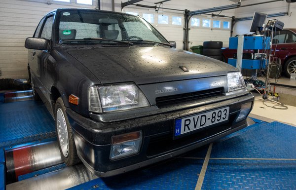 A mérésre érkező példány viszont kiköszörüli a csorbát, hiszen teljesen eredeti GTI, ráadásul érdekes előélete van. Mindössze 2,5 évig gyártotta a Suzuki az Mk1 Gti-t, kevés példány maradt mára. Ezt az autót egy Ebay-es liciten találta a mostani tulajdonos, még régi német rendszáma volt, talán a szíjak is eredetiek voltak a motoron, így azok azonnali cseréért kiáltottak. A g13b motorok tartóssága nem kérdés, a korabeli megmunkálási pontosság példás. Ez volt az első autó, aminél már a CAD (Computer Aided Design) kifejezést is használta a Suzuki.