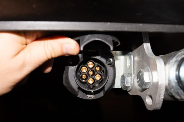 Ekkor csatlakoztassuk az elektromos csatlakozót. Itt érhet meglepetés, ugyanis a vontatón és a vontatmányon is 7 illetve 13 pólusú csatlakozók lehetnek, így ezt nem árt előre tisztázni. Nagy gond azért nincs, léteznek erre átalakítók bármelyikből bármelyik irányba.