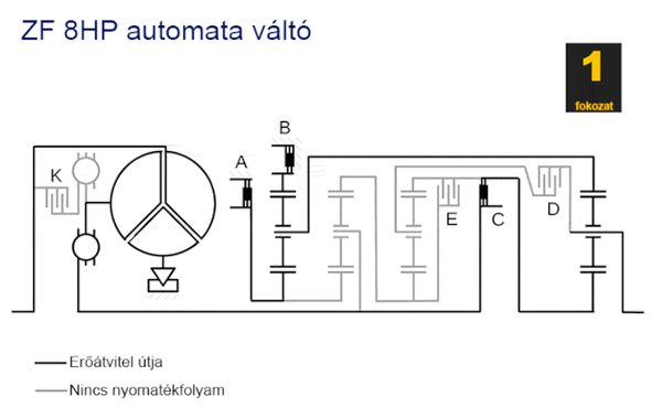 A klasszikus automaták két fő részből állnak: egy hidrodinamikus nyomatékváltóból és a mechanikus fokozatokból. Volt már egy cikkünk arról, hogyan is működik a váltó, de az alapokról azért érdemes megemlékeznünk. A hidrodinamikus nyomatékváltóban történik az olajkavarás: a belapátozott szivattyúkerék, amit a motor hajt, elkezdi az olajat kavarni, a lendületbe hozott folyadék ragadja magával a turbinakereket, és így jut a mechanikus fokozatokig a nyomaték. Sőt, a lapátozás kialakításával arra kényszerítő az olajat, hogy még több erőt vegyen fel, és a végén a bemenő nyomatéknál nagyobb jut a váltóba. A citrom és wandler néven is emlegetett szerkezet persze a fizika törvényeit nem tudja megszegni, vagyis a fordulatszám ilyenkor csökken. És a hatásfoka is borzalmas, mint a hidraulikus erőátviteleknek általában. Amikor tehát nincs rá szükség, egy sima, mechanikus tengelykapcsolóval áthidalja az egészet a váltó – na de addig, amíg ez bekövetkezik, a munkafolyadék kapja benne az ívet rendesen.