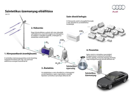 Első lépésként a levegőből különleges csapdákkal kivonnák és összegyűjtenék a szén-dioxidot. A csapda szűrőin átáramolva a szén-dioxid fennakad, és szivacsszerű anyagot képezve összegyűlik - miközben a szűrt levegő akadálytalanul áthalad. A szivacsszerű anyagot 95 fok fölé hevítve (energiabefektetés) a szén-dioxid újra felszabadul, és összegyűjtve elvezethető. A szénhidrogének közé tartozó benzin és gázolaj előállításához a másik fontos összetevő a hidrogén, amit vízből állítanának elő. Lehetőleg megújuló forrásból (szél, nap, víz) származó árammal felbontanák a vizet (újabb energiabefektetés), és a felszabaduló hidrogént használnák fel a szintetikus üzemanyag előállításához. A vízbontás másik terméke, az oxigén bármire felhasználható, de akár szabadon is ereszthető. Az így előállított hidrogén egyébként önmagában is felhasználható (lenne) belső égésű motorban, vagy tüzelőanyag-cellában.