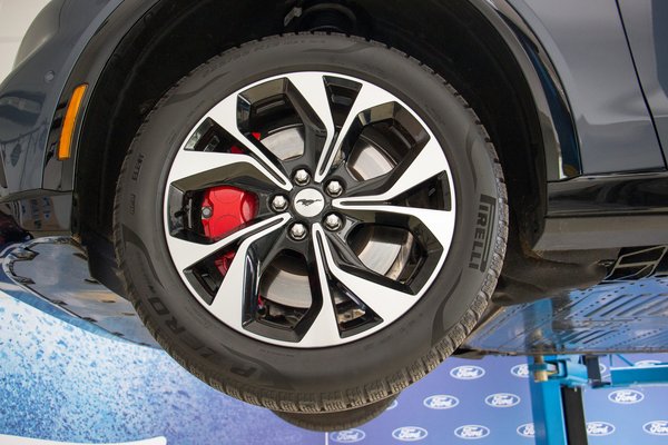 Azok a szerencsések, akik már próbálták a Mach-E-t, általában dicsérték a vezethetőségét. Ennek biztosan jót tesz az akkumulátorok súlya miatti alacsony tömegközéppont, a körülbelül 45-55 százalékos első-hátsó tömegelosztás, és az összkerekes modellek esetében is a hátsó kerekekre súlyozott hajtás. Az első MacPherson felfüggesztés azonban nem számít különlegesnek, míg hátul oldalanként öt lengőkaros, nagyon igényes futóművet találunk.