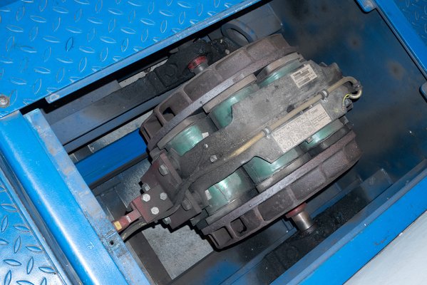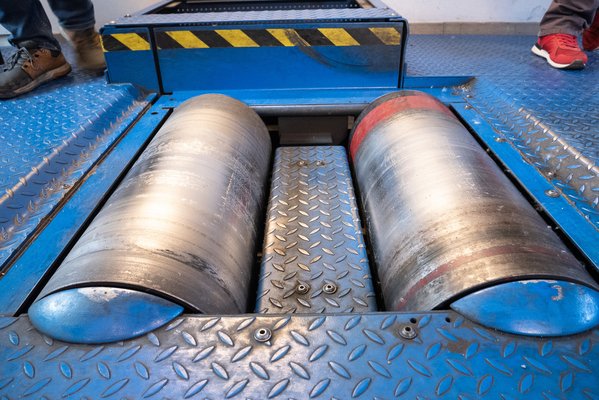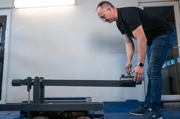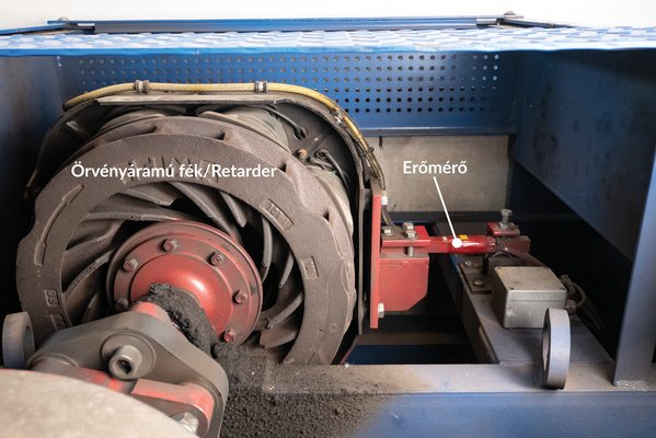 Így mérünk, most visszaugorhatunk arra, hogy miként kalibrálnak. Az elv egyszerű, a hitelesített súllyal/tömeggel egy erőkaron terheljük a padot. Ez pontosan olyan, mintha a kerék próbálná hajtani a görgőket állandó erővel. Ezt az állandó erőt pedig beállítjuk, ezzel kalibráljuk a mérőberendezésen a mért értéket. A görgők sebességmérő szenzorainak a légrését is beállítják, tisztítják, majd kap egy zsírzást, tisztítást a pad.