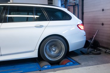 Ehhez jó tudni, hogy mit is csinál pontosan a pad, vagyis hogyan mér. Az autó motorja hajtja a kerekeket. A kerekek hajtják a görgőt, amit a számítógép árammal képes fékezni, vagyis ellentartani. Kész – ilyen egyszerű! Az ördög a részletekben rejlik, mint mindig. A pad képes akár négykerék-hajtású autót is mérni, vagyis két külön rendszere van az első és a hátsó tengelyekhez.