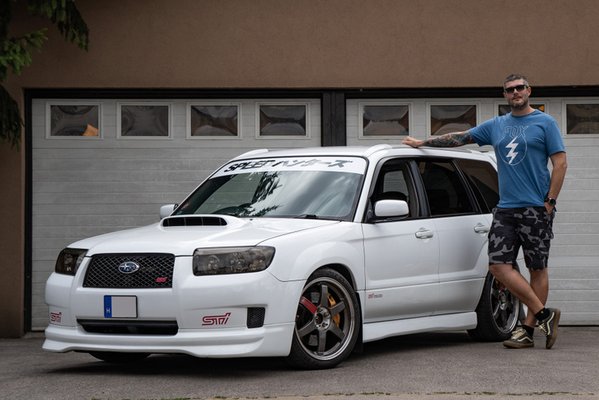 Csavarjunk egyet a dolgon! Ne csak a polgári, hanem a sportos kivitelt is építsük meg, így nem csak Imprezából, de Foresterből is lesz STi kivitel. Subaru Tecnica International, ez a gyár saját sportrészlege. Sajnos ezt a változatot nem árulták minden piacon, de egy kis akarással miénk lehet a vágyott kombináció. István is így tett, beszerzett egy JDM (azaz japán belpiacra készült) verziójú 2,5-es négyhengeres boxermotoros, megemelt, majd leültetett Imprezát, azaz egy Forester STi-t.