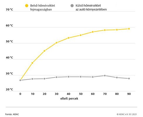 Ami pedig a legfontosabb: soha, még csak rövid időre se hagyjunk magára kisgyermeket – de házi kedvencet sem – az autóban. A fenti grafikonokból egyértelműen látszik, milyen kevés idő is elegendő ahhoz, hogy elviselhetetlen legyen a meleg. Durván megterheli a szervezetet, így életveszélynek tesszük ki a gyereket, nagymamát, kutyát, cicát, még akkor is, ha csak öt percre szaladunk be a teszkóba. És ha már gyerekek: a babahordozót, gyerekülést is érdemes letakarni, ha a kocsiban hagyjuk. Mielőtt beültetjük az utódokat, figyeljünk oda, hogy ne legyen nekik túl forró.