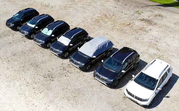 Az ADAC tesztjéhez ezúttal hét azonos kivitelű Dacia Dustert választottak ki, de a színekben akad azért eltérés – ennek később még lesz jelentősége. Az autókat egymás mellé parkolták, így egyidejűleg, egyforma körülmények között tudták megmérni, hogy a különféle praktikák és segédeszközök mennyire hatékonyak a felforrósodás elleni küzdelemben. A referencia-Dusterrel semmit nem csináltak, úgy álltak ki vele a nyári nap sugarai alá, ahogy kijött a szalonból. Ebben a Daciában egészen 53 Celsius fokig kúszott fel a hőmérő higanyszála.