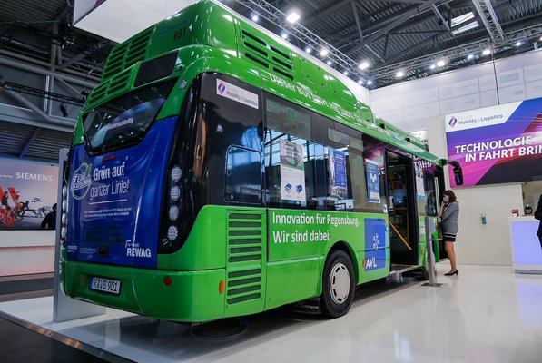 A standjukon volt is egy hidrogénes busz, de nem ez állított meg minket, hanem egy fura, dupla villanymotor: a méreteket körülbelül úgy kell elképzelni, mintha két jumbo-tekercs konyhai törlőpapírt egymás mellé fektettek volna. Ez a két motor így együtt 500 kW (kb. 680 LE) teljesítmény leadására képes rövid ideig. Az AVL embere szerint ez a világ legnagyobb teljesítménysűrűségű villanymotorja és 800 voltról működik.