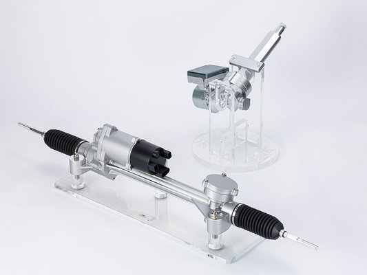 A három fő egység közül a kormánymű nem igazi különlegesség, tulajdonképpen egy olyan elektromos fogasléces szervokormánymű is beválhat, amit ma is alkalmaznak. Az egyetlen feltétel, hogy a szervomotornak a fogaslécnél kell lennie, azt kell hajtania. Ezzel együtt valószínű, hogy a feladatra speciális, nagyobb nyomatékú motorokat vetnek majd be. A kormánynál lévő egység már izgalmasabb, ott ugyanis nem csak a különböző érzékelőket találjuk. Ellenállás nélküli, azaz üresben forgó, csak elektronikus jelek adására képes kormánnyal lehetetlen lenne kézben tartani és pontosan irányítani az autót, ezért mindenképpen beépítenek egy elektromotort, ami a megfelelő érzeteket kialakítja. Valójában ez sem új találmány, a számítógépes játékoknál ezeket hívják ékes magyarsággal force feedback-es kontrollernek, legyen az akár repülős joystick, akár autós kormány.