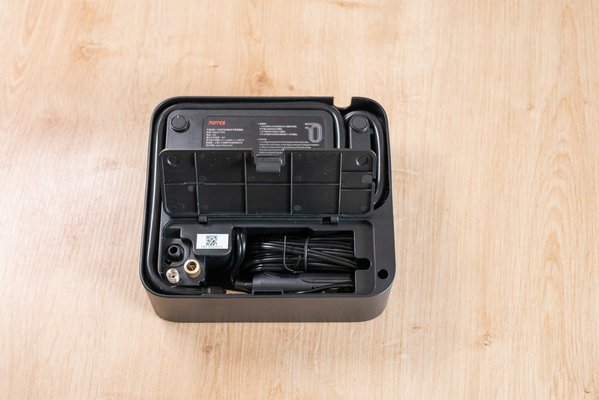 Az Air Compressor Lite készülék egy nagyobbacska médiaboxnak nézhető, mert minden tartozékot és kábelt elrejtettek a hátoldalán lévő rekeszbe. A csőnek van egy vályú, ahová benyomorgatható. Strandeszközök, labdák felfújásához és presta-szelephez való adaptereket is adnak hozzá, ezek sem fognak elkallódni, mert ezeknek is van tárolóhelyük.