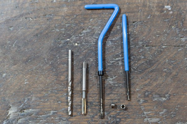 Egy készletben a menetjavító spirálbetéten kívül négy eszközt találsz, egy csigafúrót, egy menetfúrót, egy behajtót és egy pálcát, amivel a végén letöröd a betét kurfliját:
