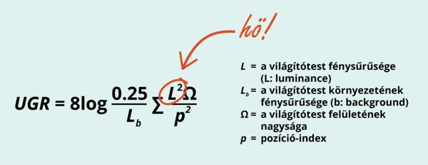 Egy egyszerű példa a fenti képen: két világítótest két teljesen azonos fénykört vetít adott távolságból. A kisebb világítótest fénysűrűsége azonban arányosan nagyobb, így jobban vakít, ha szembenézünk vele (minden olyan távolságból, ahonnét a két forrás méretének különbsége jelentős – tipikus régi vs. új autólámpák példájánál maradva ez legalább 30, de inkább 100+ méter). Ez a káprázás becslésére szolgáló egyenletekben is megmutatkozik: a fénysűrűség négyzetesen járul hozzá a végeredményhez! Vagyis kétszeres fénysűrűség négyszer zavaróbb.