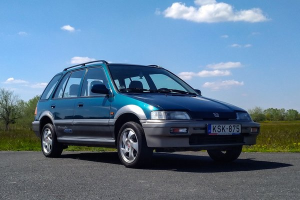Oké, Honda, de mi ez egyáltalán? Egy 1988-ban piacra dobott modell, amit a 4. generációs, négygen Civic padlólemezére építettek, és egy kompakt SUV. Vagy egyterű, esetleg szabadidő autó, talán kombi – aminek látni szeretnénk. Civicből volt háromajtós, négyajtós limuzin, CRX kupé és ez. A limó is kaphatott összkerékhajtást, de Shuttle, vagyis a kombi összkerékhajtási rendszere az igazán érdekes. Viszkó van beépítve a hátramenő kardánba, és 6 fokozatú váltó van hozzá, de nem úgy, ahogy gondolnánk. A gombon 5 számot és egy SL, azaz Super-Low fokozatot láthatunk az R-en kívül. Ez az 1-esnél lassúbb áttétel: 4,51 a 3,38-hoz képest.
