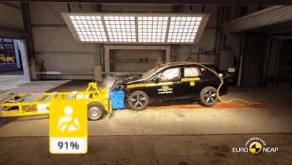 A töréstesztek alapműfaja az, ahol az autó nekimegy egy álló, fix akadálynak. Ilyenkor a sebességváltozása legfeljebb annyi lesz, amennyivel haladt, vagyis tipikusan -64 km/h. Igazából persze ennyi se, mert az ütközés félátfedéses, amiből általában kifordul a vizsgált autó, ami azt is jelenti, hogy nem kell az utolsó joule-ocska mozgási energiának is gyűrődő-szakadó lemezbe fordulnia. Ha ilyen körülmények között valami jól teljesít, megkapja a csillagokat. Ha viszont nem egy szép, homogén módon gyűrődő, rögzített akadállyal karambolozik, hanem egy másik autóval odakint a vadonban, akkor a helyzet sokkal csúnyább is lehet.